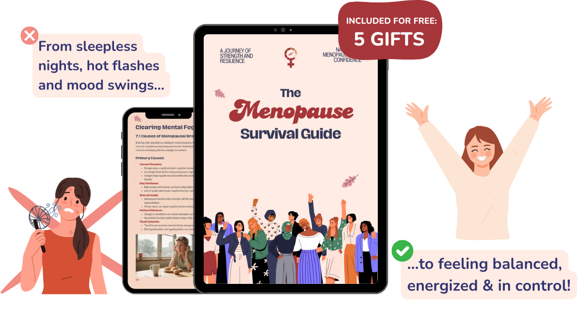 Disclaimer: The information provided on this website and in The Menopause Survival Guide is for informational and educational purposes only and is not medical advice. The content is based on publicly available research, general wellness principles, and personal experiences. It is not a substitute for professional medical advice, diagnosis, or treatment. Always consult with a qualified healthcare provider before making any changes to your health, diet, or treatment plan.